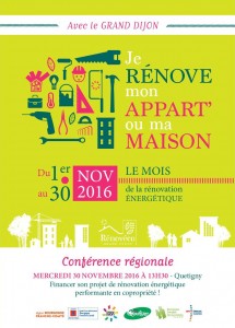 - Conférence « Les clés de réussite d’une rénovation énergétique de qualité dans l’habitat : présentation d’expériences », le 24 novembre à 18h30 à Dijon. Inscriptions : 03 80 50 37 47 – smagniere@grand-dijon.fr